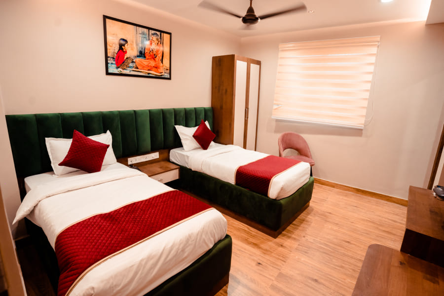 Designed specially to pamper its guests, the deluxe twin rooms showcase a perfect blend of luxury in its accommodation with utmost security.